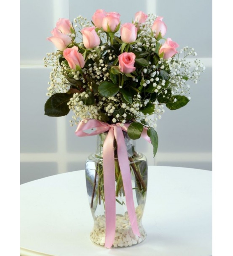 Vazoda Pembe Güller Tasarım 'da kullanılan çiçek ve aksesuarlar stok durumuna göre farklılık gösterilebilir.